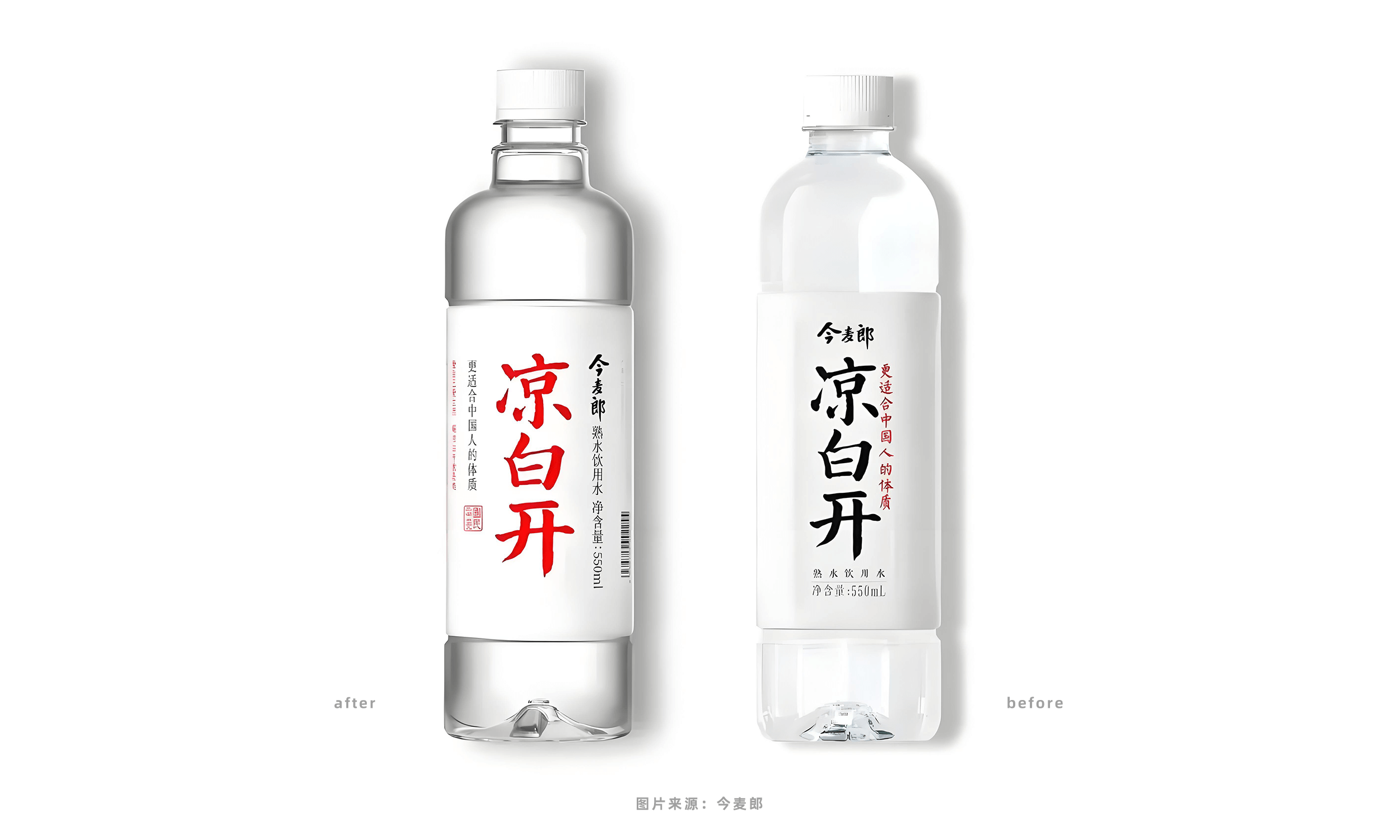 如:今麥郎涼白開(kāi)的包裝升級(jí)。