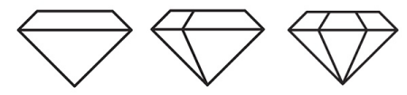 畫(huà)一條直線來(lái)定義鉆石的頂部平面。然后繪制兩條成角度的線條,將鉆石分成三個(gè)部分。用這些內(nèi)部線條模仿鉆石的輪廓。組你的圖標(biāo)元素結(jié)合在一起。使用“筆劃”面板中的“圓角大寫(xiě)”和“角”將筆畫(huà)寬度設(shè)置為3-5磅。