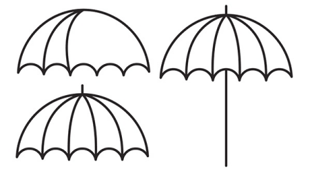 使用您選擇的繪圖工具,從傘頂部到傘的每個(gè)扇形點(diǎn)繪制四條曲線。使用線段工具,在傘頂部畫(huà)一條小線,從傘底部伸出一條長(zhǎng)線。