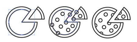披薩圖標(biāo)也很簡(jiǎn)單。使用橢圓工具繪制一個(gè)大圓。使用選擇工具來(lái)切換圓的半徑角度,從而切出一個(gè)截面。重復(fù)第二個(gè)圓圈,但這次你只想要留下一小部分。
