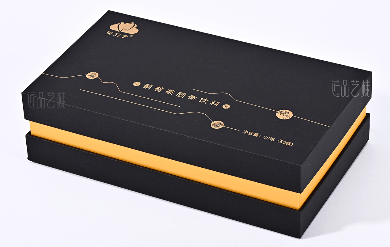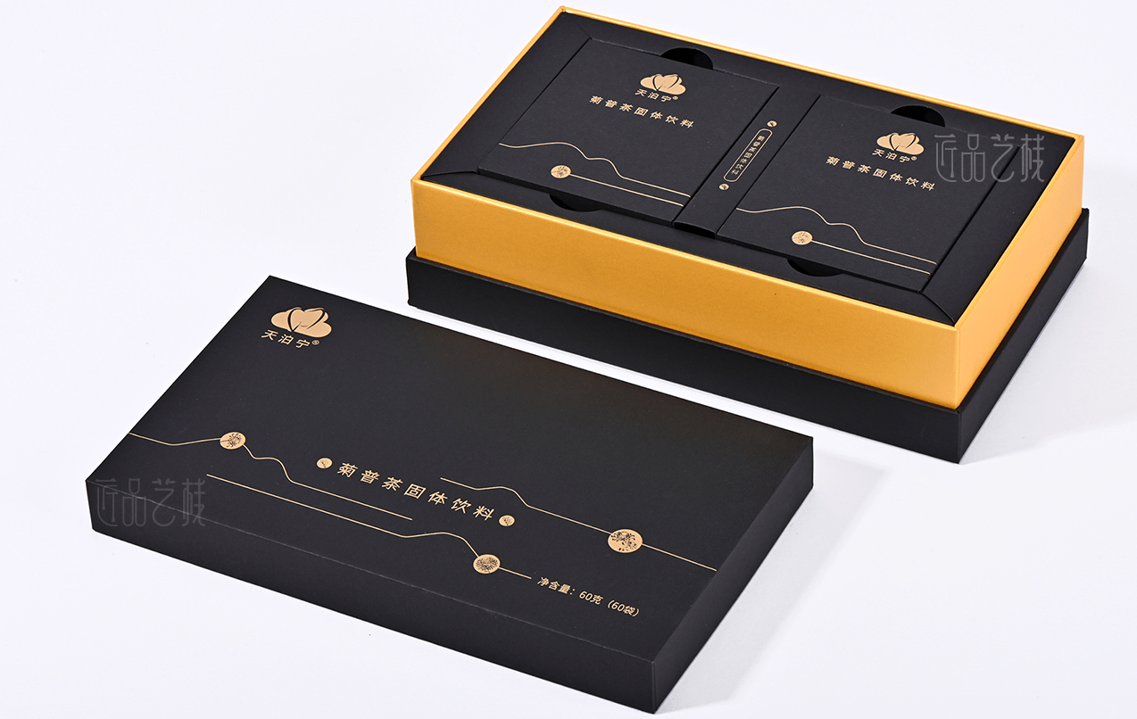 天泊寧茯苓普洱茶粉固體飲料品牌,選用云南高海拔優(yōu)質(zhì)大葉種普洱茶、上等優(yōu)質(zhì)茯苓為原料,經(jīng)現(xiàn)代生物技術(shù)加工而成。在其系列產(chǎn)品包裝盒設(shè)計(jì)印刷中,匠品藝棧采用普洱茶的黑色為統(tǒng)一主色,并根據(jù)不同產(chǎn)品分類(lèi)采用不同顏色腰條為區(qū)分,使其整個(gè)系列產(chǎn)品包裝盒,既能形成統(tǒng)一的品牌視覺(jué)形象,同時(shí)又區(qū)分出鮮明的產(chǎn)品特色。
