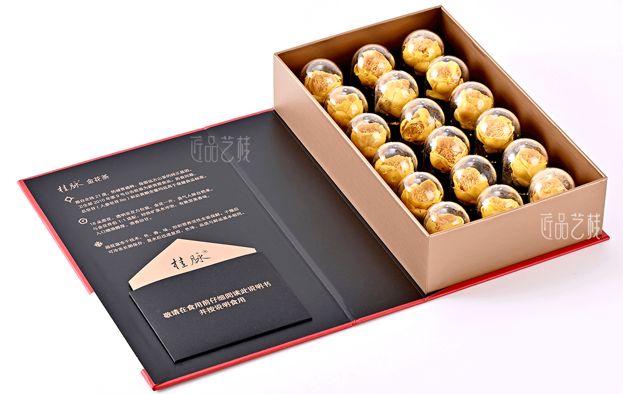 桂脈金花茶,廣西金花茶領(lǐng)導(dǎo)品牌。金花茶是上古時代遺留下來的原始山茶遺珍,在桂脈品牌金花茶設(shè)計定制中,佳潤隆包裝&匠品藝棧采用傳統(tǒng)書籍的創(chuàng)意形式,結(jié)合現(xiàn)代的印刷工藝和簡約風(fēng)格,搭配質(zhì)感紙質(zhì)和內(nèi)托精制而成;使整理禮盒呈現(xiàn)出中國韻味文化,同時又不失送禮時的低調(diào)輕奢品質(zhì),打開包裝,金花燦燦,寓意貴氣人脈來,送禮倍有面。