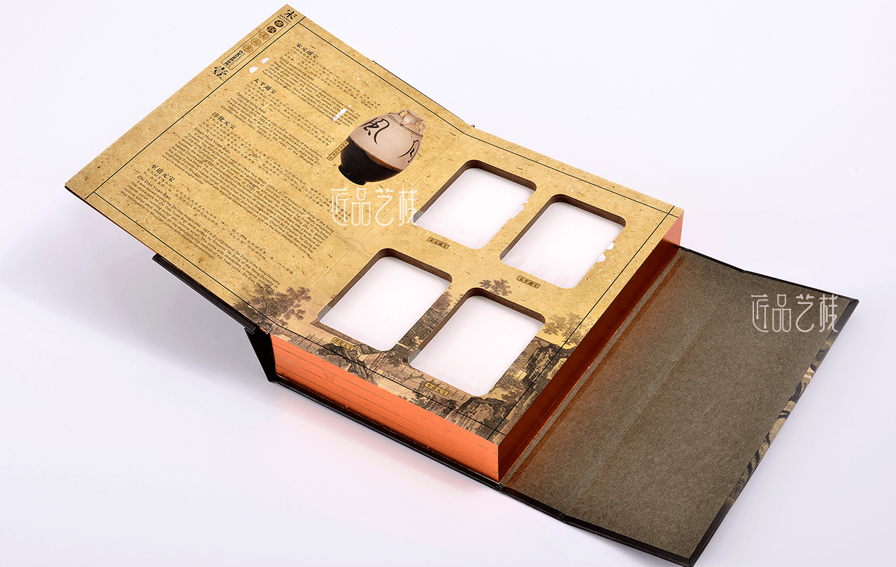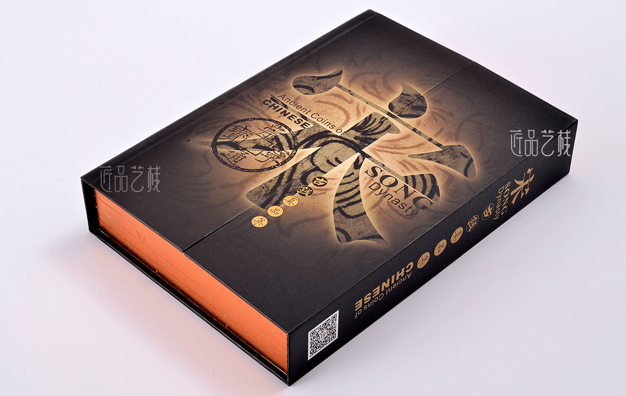 古錢(qián)真品集包裝盒套裝定制,是一款專(zhuān)為古錢(qián)幣收藏而定制的包裝盒,采用蝴蝶活頁(yè)精裝的創(chuàng)意結(jié)構(gòu),以中國(guó)古典元素結(jié)合雙開(kāi)門(mén)的形式,以及金邊燙印等工藝,使整個(gè)包裝盒呈現(xiàn)出古典、奢華和濃濃的歷史感,體現(xiàn)出所收藏古幣的高端品質(zhì)感和文化價(jià)值。