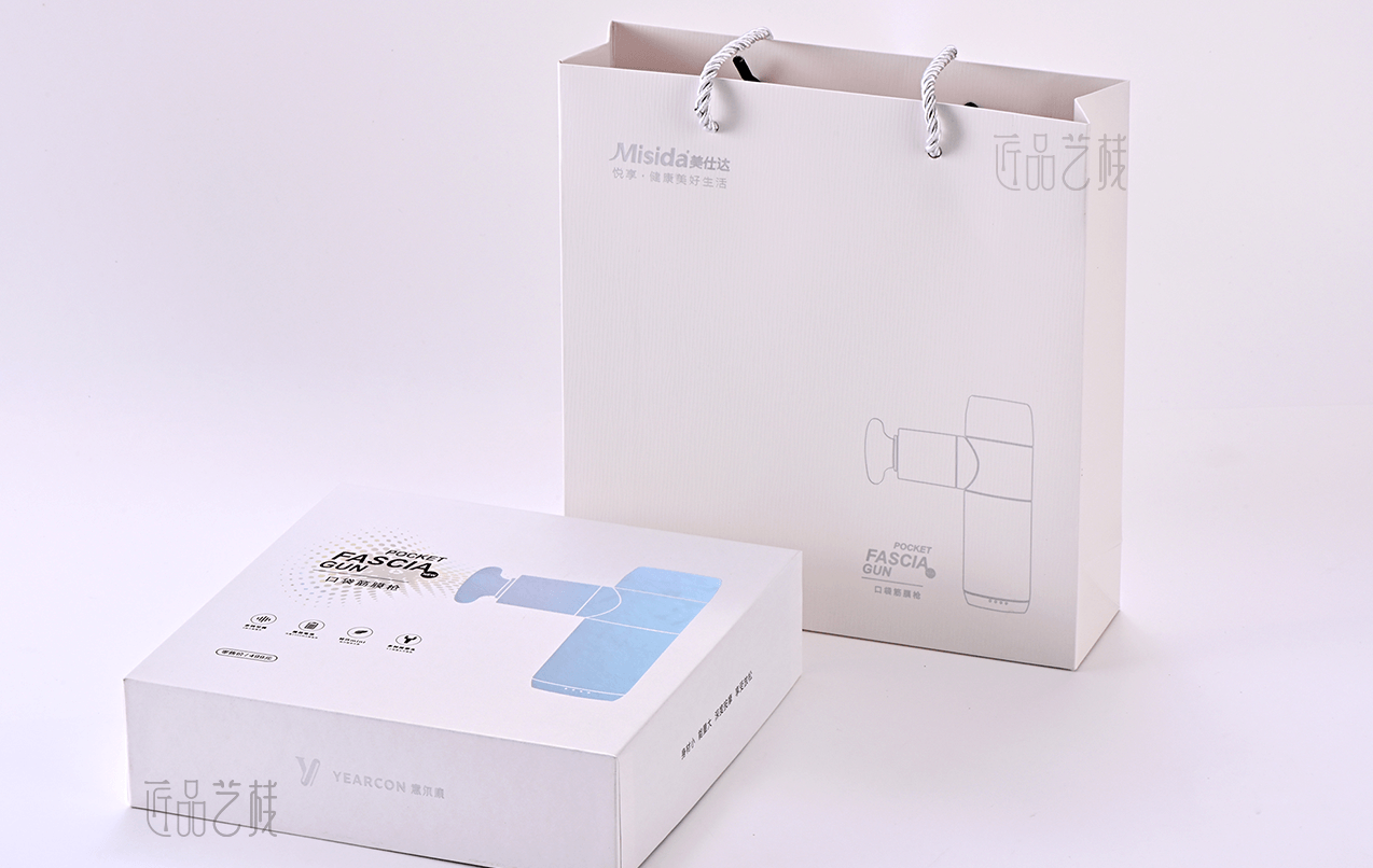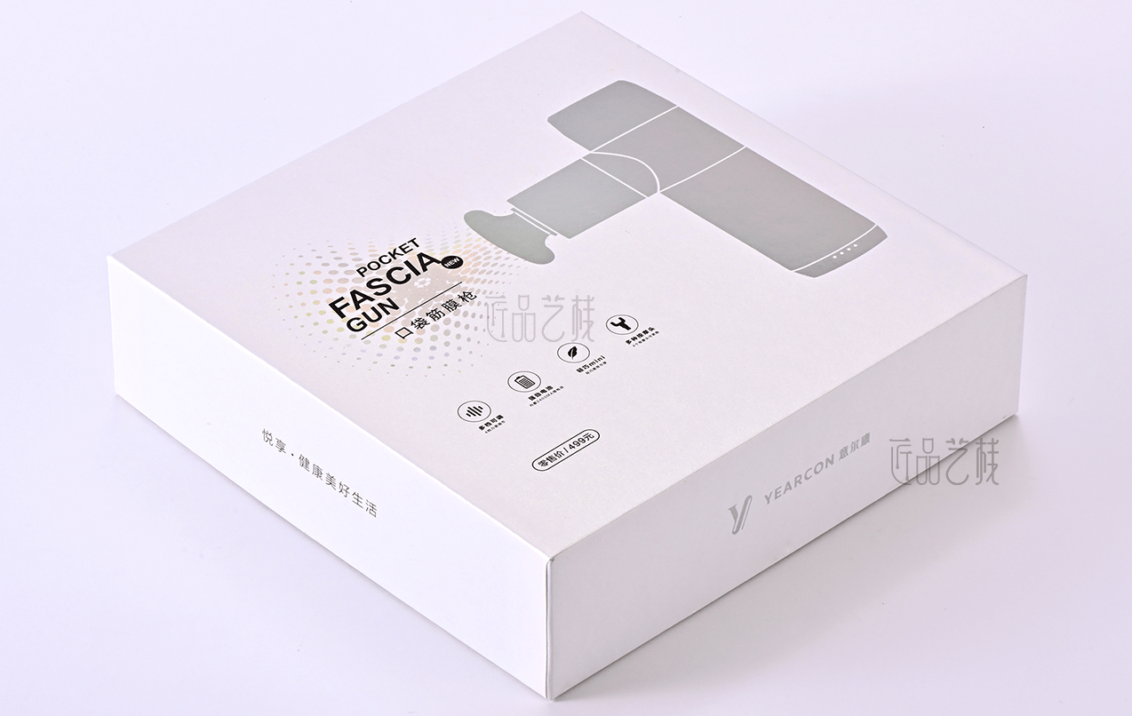 意爾康企業(yè)集團,全國3000多家專賣店連鎖品牌。在針對其口袋按摩槍產(chǎn)品包裝盒制作時,佳潤隆包裝印刷&匠品藝棧,根據(jù)相應設計方案,配置a級珠光紙和uv機印刷,同時采用鐳射燙金工藝和精制天地盒,使整體產(chǎn)品包裝盒呈現(xiàn)簡而不凡的氣質(zhì),在市場中脫穎而出。