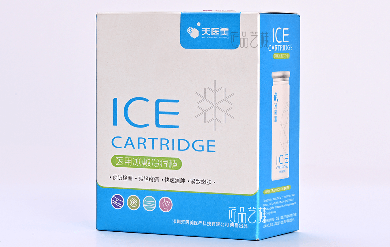 深圳天醫(yī)美醫(yī)療科技有限公司,主營醫(yī)療器械、醫(yī)療設(shè)備等技術(shù)研發(fā)與銷售,佳潤隆包裝印刷&匠品藝棧在與其天醫(yī)美品牌醫(yī)用冰敷冷療棒產(chǎn)品包裝盒印刷定制時,直接采用品牌冰面珠光紙,UV油墨和UV印刷烘干方式,使其產(chǎn)品包裝盒更貼切于產(chǎn)品冰敷冷療的氣質(zhì),以及給人們帶來健康和美膚的寓意。