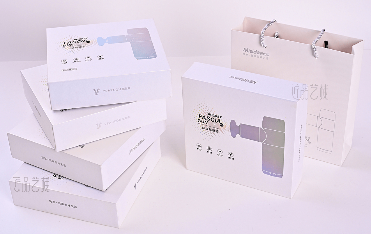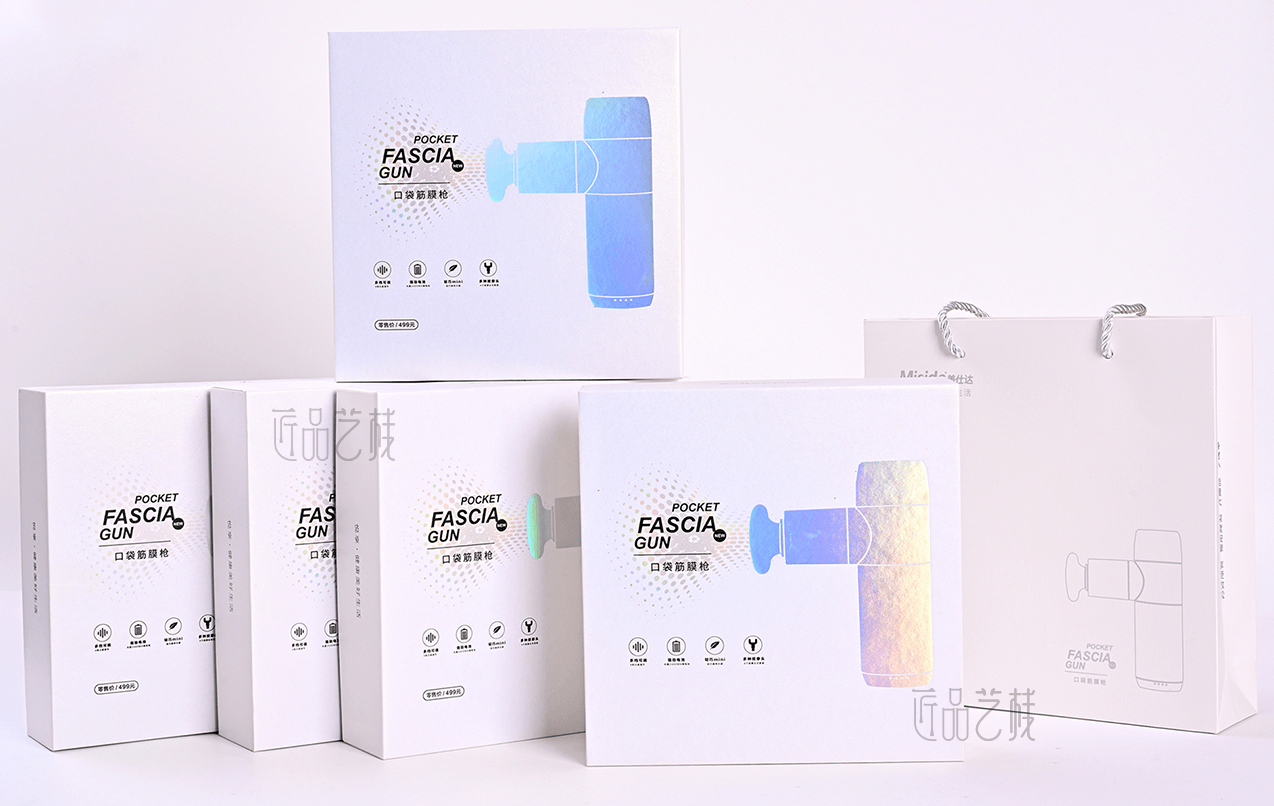 美仕達(dá)口袋筋膜槍品牌,是深圳悅來科技有限公司主營品牌,亦是佳潤隆包裝印刷&匠品藝棧長期合作企業(yè)之一,在針對其口袋按摩槍產(chǎn)品包裝盒制作時(shí),佳潤隆包裝印刷&匠品藝棧,根據(jù)相應(yīng)設(shè)計(jì)方案,配置a級(jí)珠光紙和uv機(jī)印刷,同時(shí)采用鐳射燙金工藝和精制天地盒,使整體產(chǎn)品包裝盒在市場中脫穎而出,呈現(xiàn)簡而不凡的健康品牌氣質(zhì)。